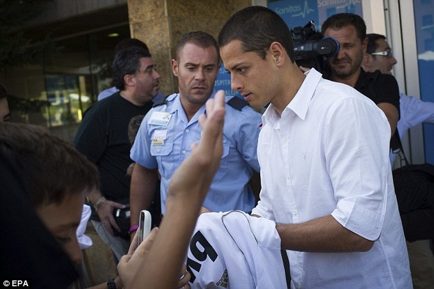Sau khi M.U đồng ý cho Real mượn tiền đạo Javier Hernandez (Chicharito), chân sút người Mexico đã có mặt tại trụ sở của CLB Hoàng gia Tây Ban Nha vào ngày cuối của kỳ chuyển nhượng. |