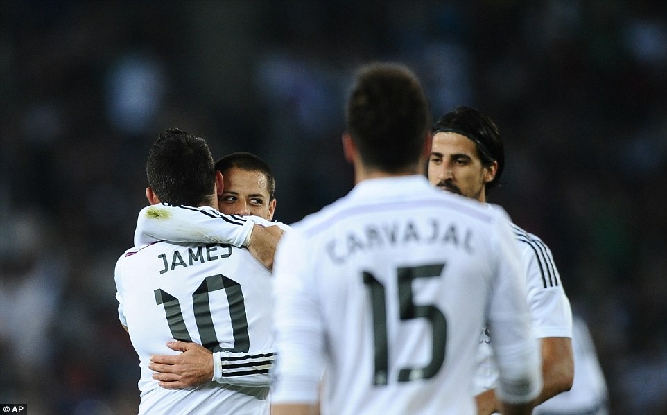 | Đẳng cấp vượt trội giúp Real áp đảo hoàn toàn thế trận và họ tiếp tục có bàn thắng thứ 3 ở phút 52. Người lập công là Chicharito sau một tình huống nỗ lực đi bóng và dứt điểm ở khu vực trung lộ. |