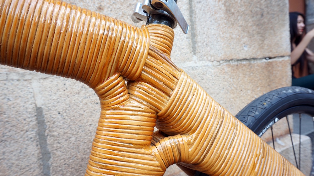 | Tuy có khung làm bằng mây, nhưng xe có độ bền tương đương những chiếc xe đạp thông thường. Người lái có thể đứng một bên xe mà không sợ xe cong vẹo. |