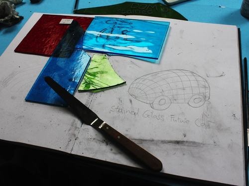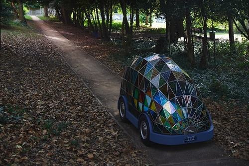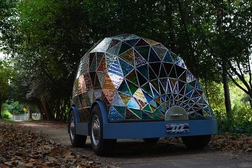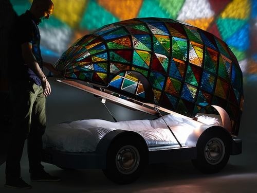Những mảnh thủy tinh thủ công tỉ mỉ đã được kết thành một tấm kính phía trên tạo nên một bức tranh màu đẹp mắt. Theo các nghệ sĩ thiết kế, "Chiếc xe được kết hợp cách làm thủ công của của thủy tinh với công nghệ hiện đại và tương lai để tạo ra một cách vận chuyển mới vào giữa thế kỷ 21."