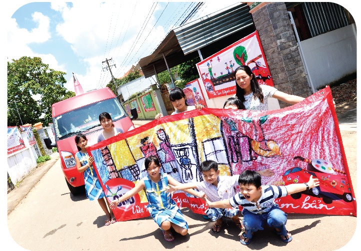Trên đường phố, những bức tranh khổng lồ vẽ ước mơ của trẻ được treo rất trang trọng. Còn trong sân trường tiểu học Tam Phước 2, hàng trăm học sinh hào hứng vẽ ước mơ khoe với bố mẹ, bạn bè và thế giới. Những nụ cười rạng rỡ, những tiếng hò reo vang dội chào đón chiếc xe chở niềm vui đã đến với Đồng Nai.