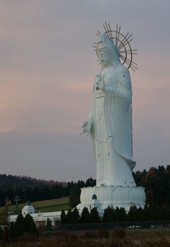 Dai Kannon là tên tượng Quán Thế Âm Bồ Tát ở Công viên Kita no Miyako, Hokkaido, Nhật Bản. Người ta hoàn thành bức tượng năm 1989 với chiều cao 88 m. Du khách có thể lên đỉnh bức tượng để chiêm ngưỡng toàn cảnh hoặc ngồi cầu nguyện ở 8 khu vực đặc biệt bên trong tượng. Ảnh: Wikipedia.