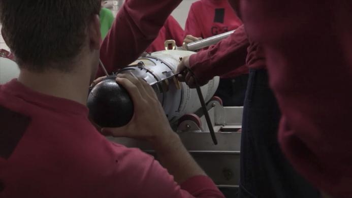 USS George H.W. Bush mang theo số lượng lớn vũ khí để phục vụ chiến dịch không kích của quân đội Mỹ. Các chuyên viên đưa những quả bom GBU-54, trọng lượng 230 kg, từ kho vũ khí lên boong tàu để gắn vào máy bay. |