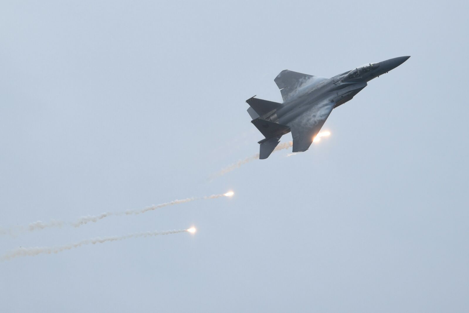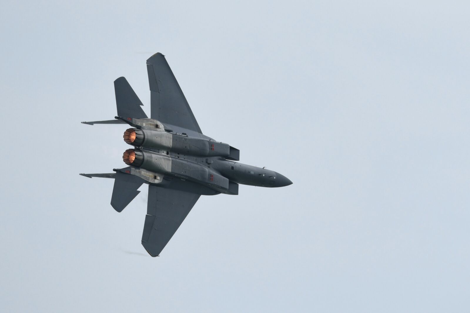 | Động cơ của F-15 hoạt động khi máy bay thực hiện động tác.