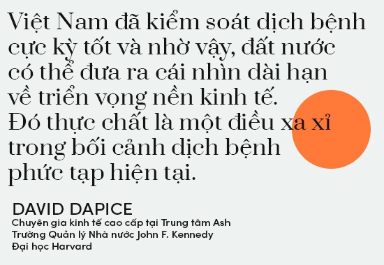 Đến nay, Việt Nam đã kiểm soát dịch bệnh cực kỳ tốt và nhờ vậy, đất nước có thể đưa ra cái nhìn dài hạn về triển vọng nền kinh tế. Đó thực chất là một điều xa xỉ trong bối cảnh dịch bệnh phức tạp hiện tại. Các bạn cũng không cần thay đổi chính sách để phục vụ nhu cầu cứu trợ trong ngắn hạn.