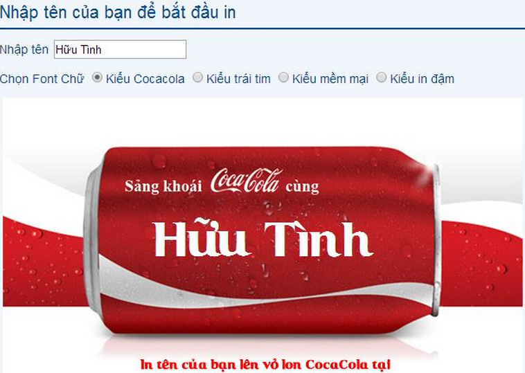 | Phần mềm hướng dẫn in tên trên vỏ lon Coca-Cola. |