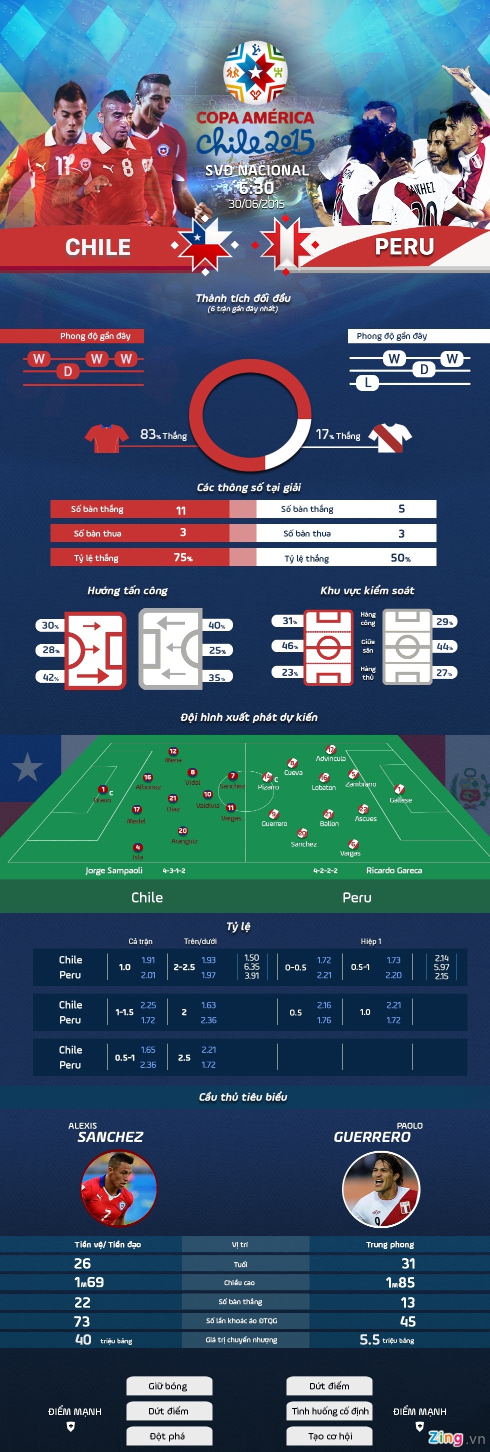 Chạm trán đối thủ không quá mạnh như Peru (6h30 ngày 30/6) là cơ hội để chủ nhà Chile giành vé dự chung kết Copa America sau hơn 1/4 thế kỷ chờ đợi.