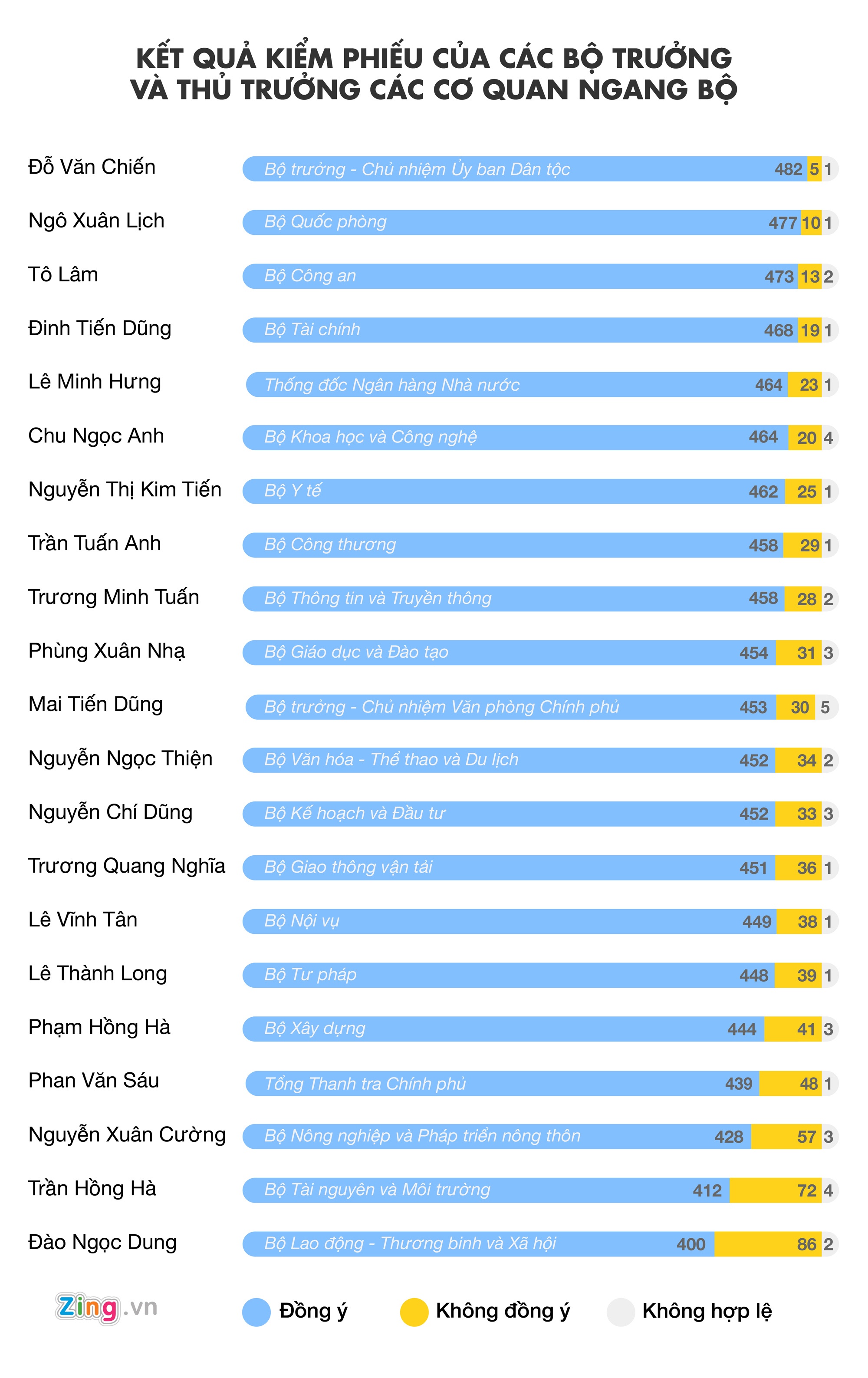 Danh sách các bộ trưởng, thủ trưởng cơ quan ngang bộ và kết quả kiểm phiếu: