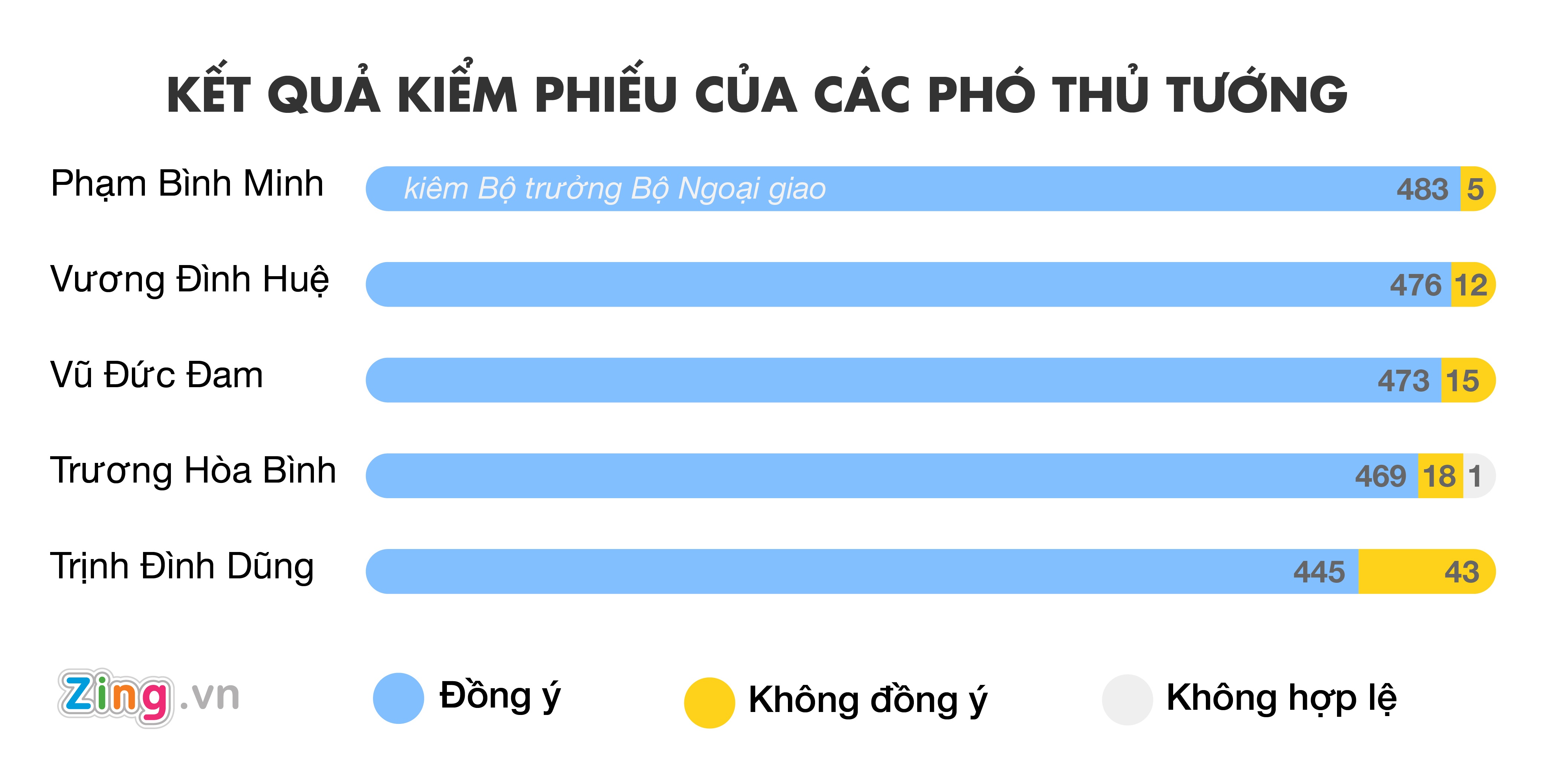 Cụ thể, danh sách 5 phó thủ tướng và kết quả kiểm phiếu: