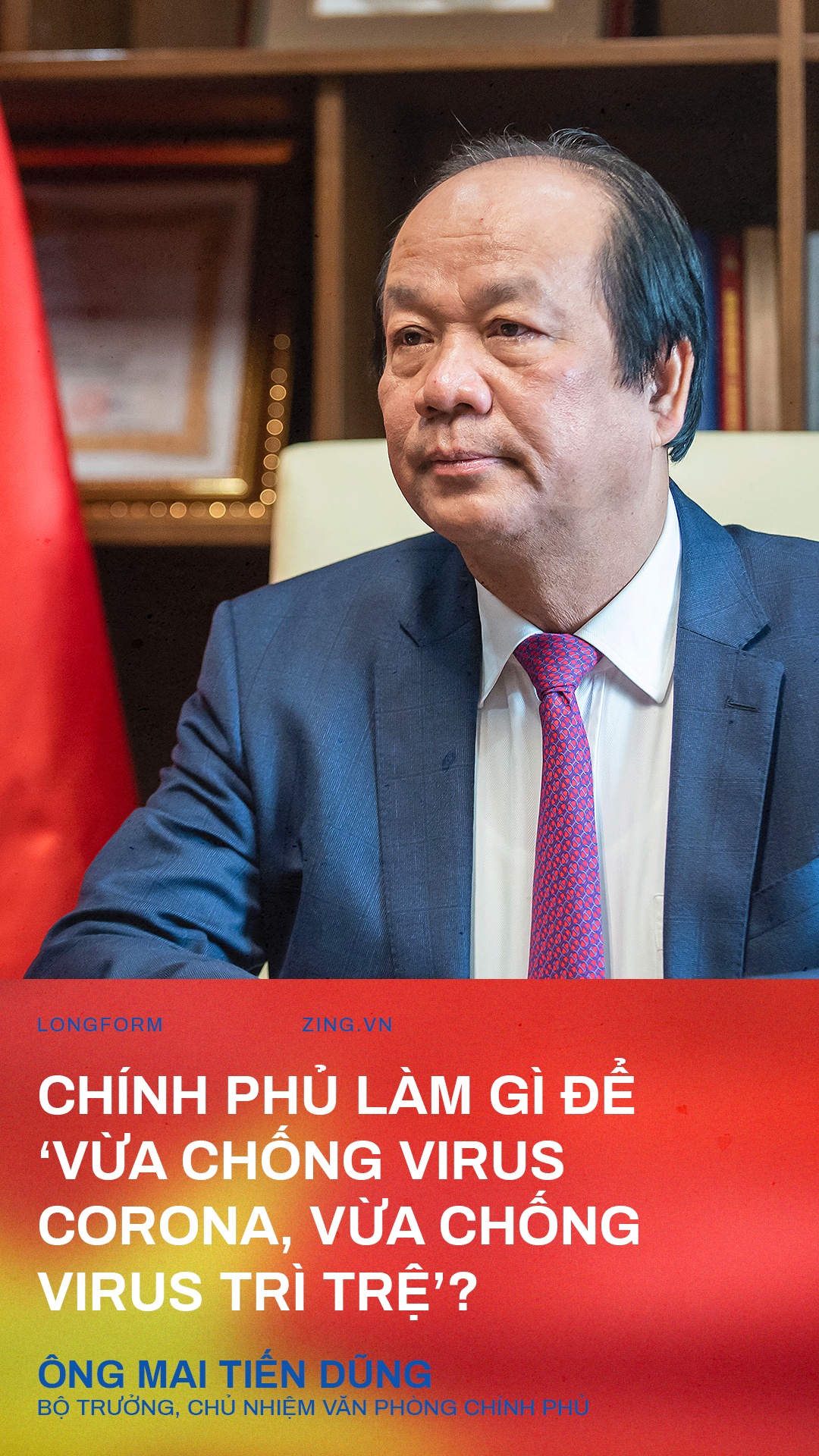 "Thủ tướng nói 'chống virus trì trệ' là mong muốn toàn hệ thống chính trị, cộng đồng doanh nghiệp và người dân đồng tâm, nhất trí, tin tưởng Chính phủ trong công tác phòng, chống dịch bệnh và phát triển kinh tế - xã hội", Bộ trưởng, Chủ nhiệm Văn phòng Chính phủ Mai Tiến Dũng chia sẻ với Zing.vn.