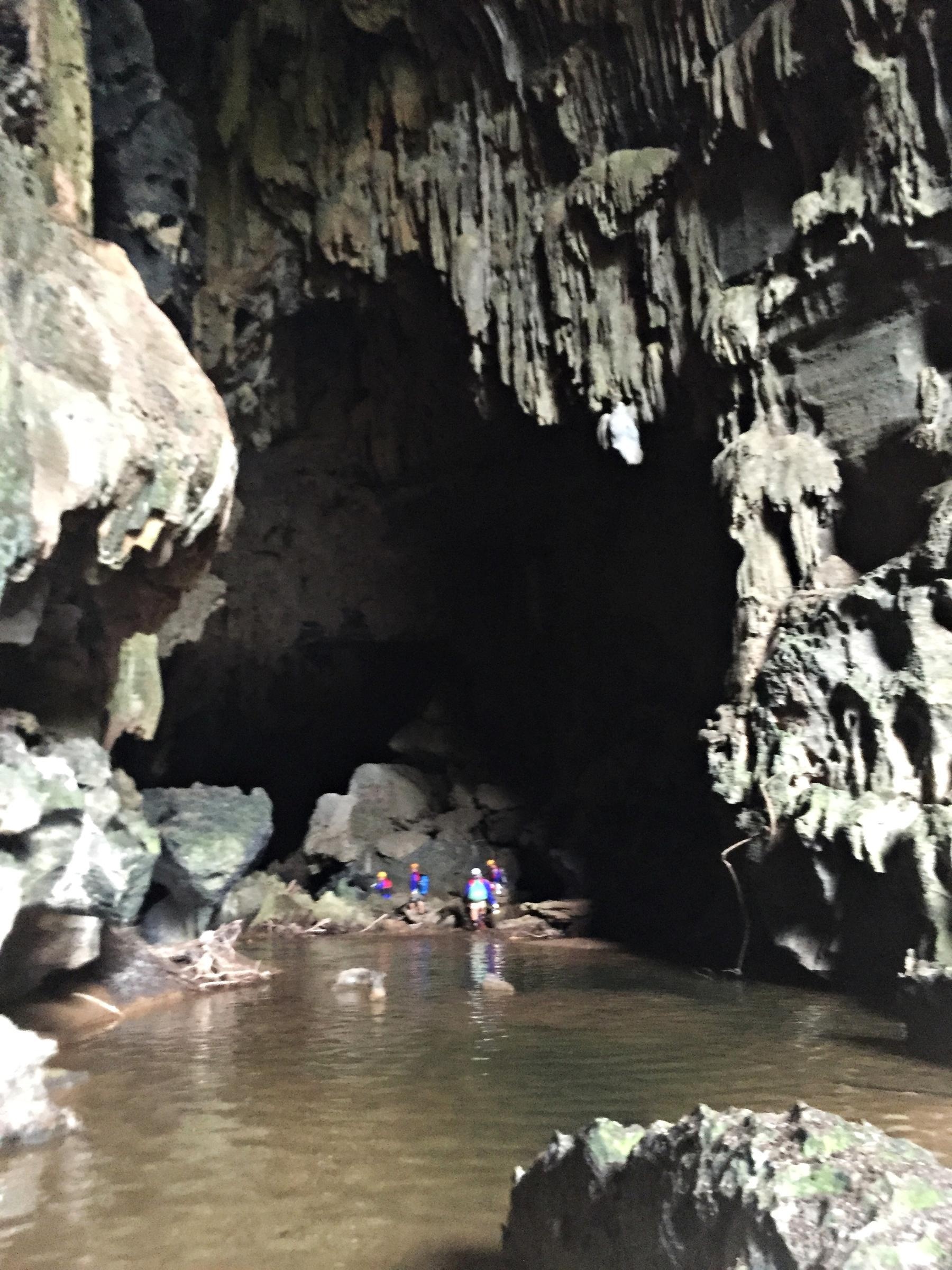 Khoảng 16h, cửa hang rộng chừng 20 m, cao 50 m, sâu thăm thẳm một màu đen tạc vào vách núi xanh xám đã hiện ra, vừa như mời gọi, vừa như thách thức. Đoàn chúng tôi 22 người, mà vẫn trở nên bé nhỏ, lọt thỏm, lẻ loi giữa thiên nhiên hùng vĩ, tráng lệ.