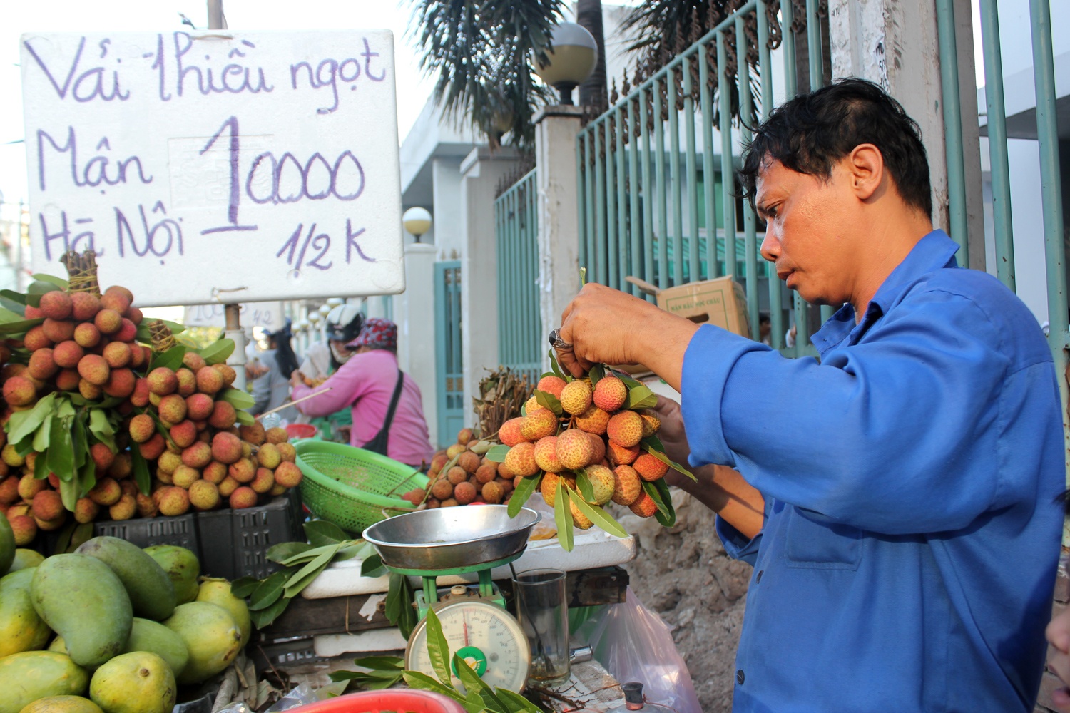 | Hầu hết trái cây được người bán lấy từ chợ đầu mối nông sản Thủ Đức. Sau khi khui thùng, vải được người bán kết chùm, gắn thêm một vài lá của cây khác để bắt mắt hơn. Mặt dù để giá 10.000 đồng 0,5 kg nhưng khi khách trả tiền, người bán lại thu 40.000 đồng/kg. Sau đó, họ mới thông báo cho khách là mức giá 10.000 đồng/0,5 kg (20.000 đồng/kg) áp dụng với vải nhỏ, kém chất lượng. |