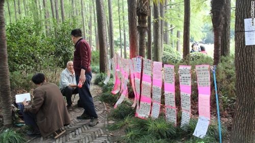 Những gì mà ông Liu đang làm chính là điều diễn ra hàng ngày, hàng giờ ở “chợ hôn nhân Thượng Hải này”. Vào mỗi cuối tuần, các bà mẹ, ông bố và người thân trong gia đình của một người nào đó sẽ đến góc nắng chiếu lốm đốm của Công viên Nhân dân Thượng Hải để tìm được ý trung nhân cho con cái hay cháu chắt của họ.
