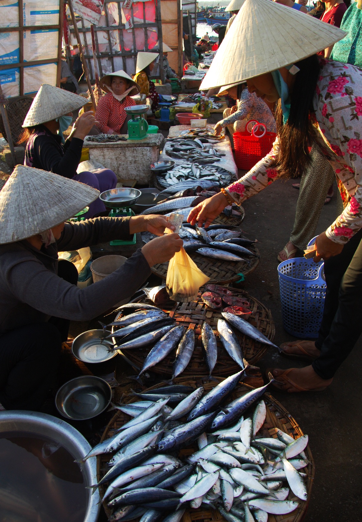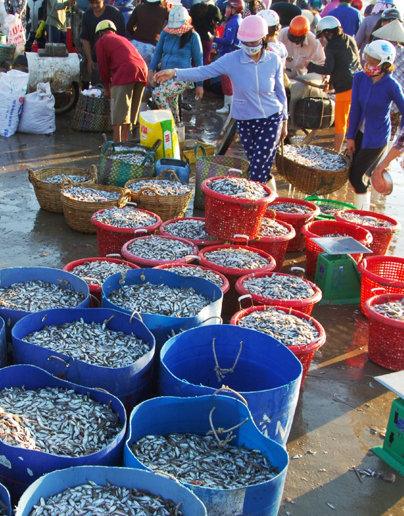 | Chợ cá Xuân Cảnh ở phía bắc Thị xã Sông Cầu, tỉnh Phú Yên, cách TP. Quy Nhơn khoảng 30 km theo hướng Quốc lộ 1 và cách TP. Tuy Hòa 70 km. Nơi đây bán các loại hải sản tươi ngon của đầm Cù Mông. Trong ảnh: Sáng sớm, sau một đêm đánh bắt ngoài biển và trong đầm Cù Mông, các loại thuyền cá lớn, nhỏ của ngư dân các làng chài thuộc xã Xuân Hòa, Xuân Hải, Xuân Bình và dốc Nhà Ngòi đã cập bến chợ này. |
