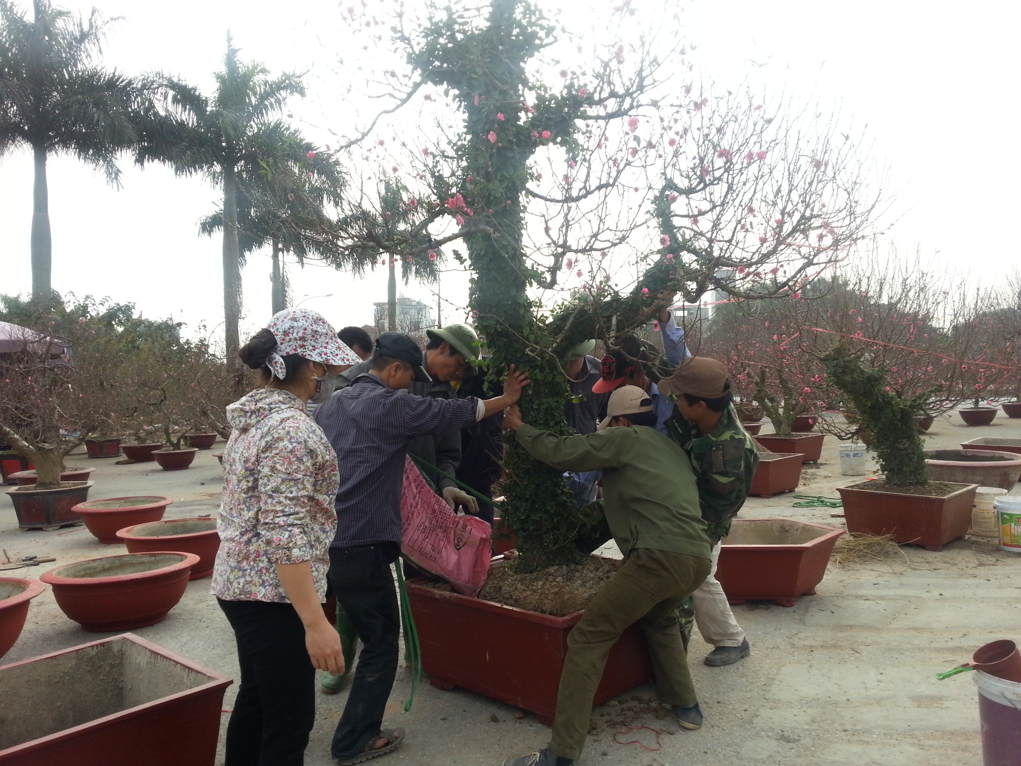 Anh Trần Văn Nghiệp sống ở Xuân Đỉnh (Hà Nội) đã 3 mùa Tết chở đào thuê cho chủ vườn ở Nhật Tân. Mỗi ngày công, anh kiếm được 300.000 đồng và được chủ nuôi ăn trưa. “Vào những ngày cận Tết, công việc nhiều, chủ có thể trả công gấp đôi ngày thường”, anh Nghiệp nói.