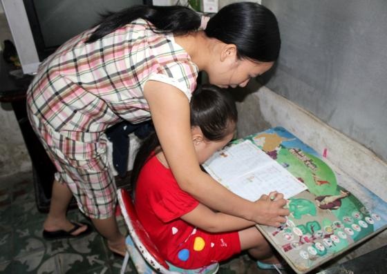 | Ngồi sai tư thế cúi gằm xuống bàn là tư thế dễ phạm phải của trẻ học chữ sớm. Ảnh tư liệu |