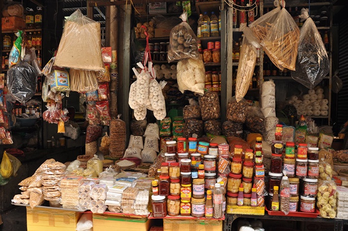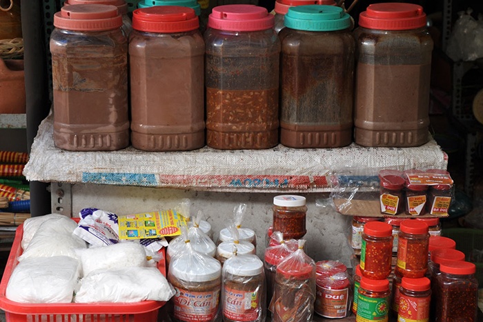 Rất nhiều quầy hàng tại chợ bán đầy đủ các món đặc sản, gia vị được mang từ miền Trung vào.