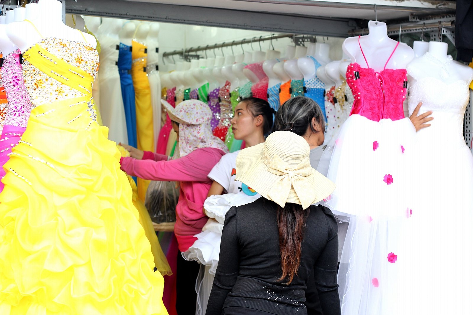 | Để thuê được một bộ trang phục cưới bình dân ở shop, các cặp đôi phải chi ít nhất trên 2 triệu đồng, nhưng với số tiền đó họ đã đủ mua trọn bộ đồ cưới gồm cả soa-rê, áo vest, áo dài tại ngôi chợ có một không hai ở Sài Gòn. |
