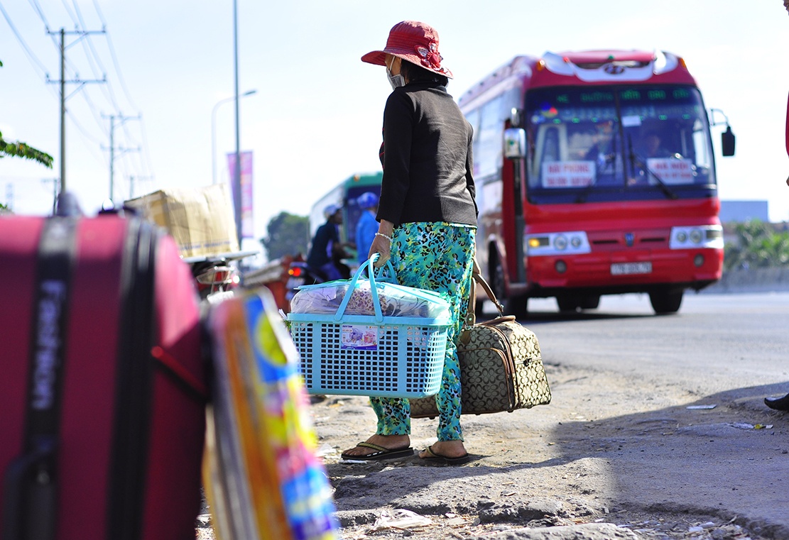 | Sau 4 giờ chờ không có kết quả, hai vợ chồng quê Thanh Hóa quyết định quay về phòng trọ chờ chuyến xe hôm sau. Người công nhân xa quê cho biết, anh gọi điện đặt xe giường nằm chạy tuyến TP HCM - Ninh Bình từ 5 ngày trước. Theo lịch hẹn, hôm nay họ ra quốc lộ để lên xe về quê nhưng chủ phương tiện thông báo hết chỗ và yêu cầu chờ chuyến 17h cùng ngày. "Tôi chờ suốt 5 giờ rồi họ lại thông báo tuyến cuối cùng trong ngày không thể đến đón do đổi hành trình", nam hành khách phẫn nộ. |