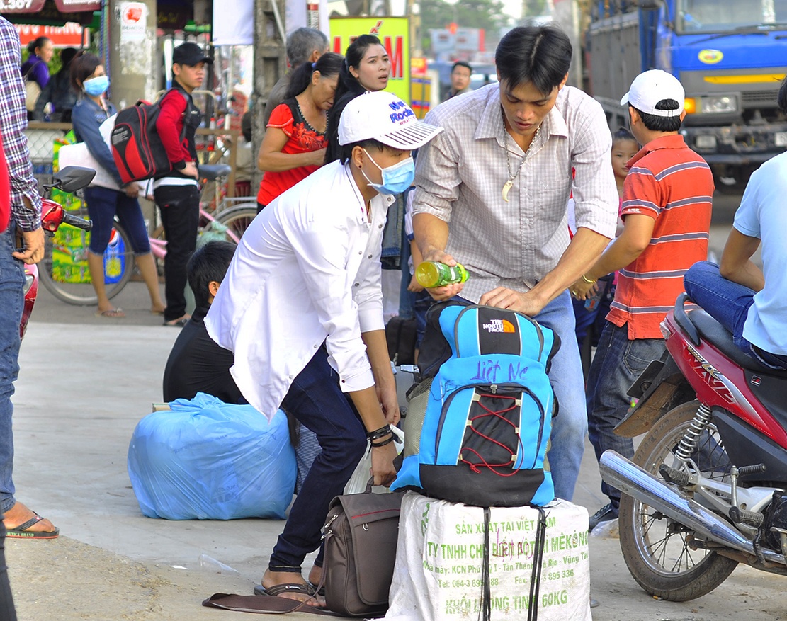 | Trong khi đó, những công nhân các tỉnh miền Tây làm việc tại khu công nghiệp Hố Nai (xã Hố Nai 3, huyện Trảng Bom, Đồng Nai) cũng đổ ra đường mua vé về quê. |