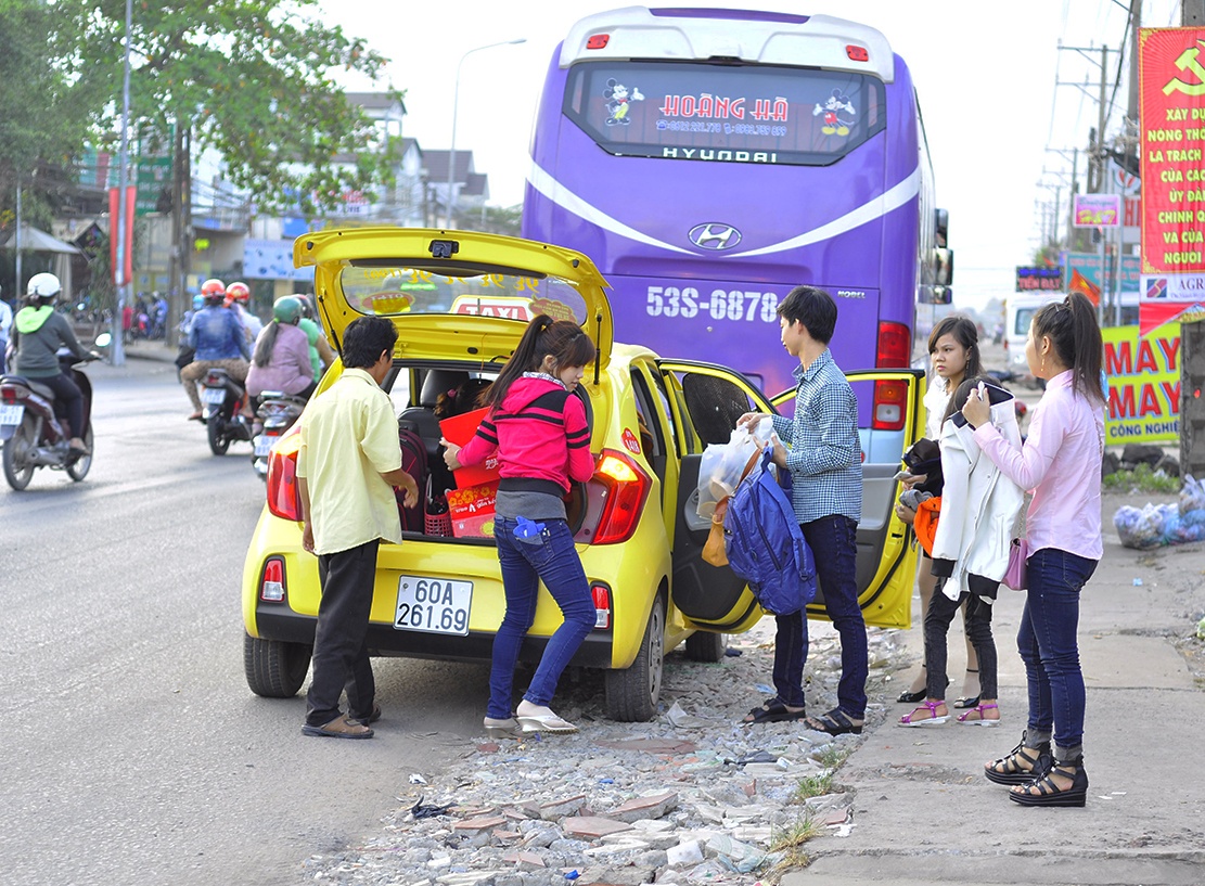 | Ngày 3/2 (25 tháng chạp) những người xa quê làm việc tại Đồng Nai đổ ra quốc lộ 1 đón xe về Tết. Bà Nguyễn Thị Thu Hương, quê tỉnh Hà Tĩnh cho biết: "Cả năm làm ăn xa nên Tết này cố gắng về với gia đình. Cứ nghĩ ra đường là đón được xe nên tôi không đặt vé trước. Hàng trăm chiếc chạy tuyến TP HCM - Hà Tĩnh nhưng đa phần đủ khách hoặc giá quá cao nên chờ từ 11h đến 15h vẫn không mua được vé". |