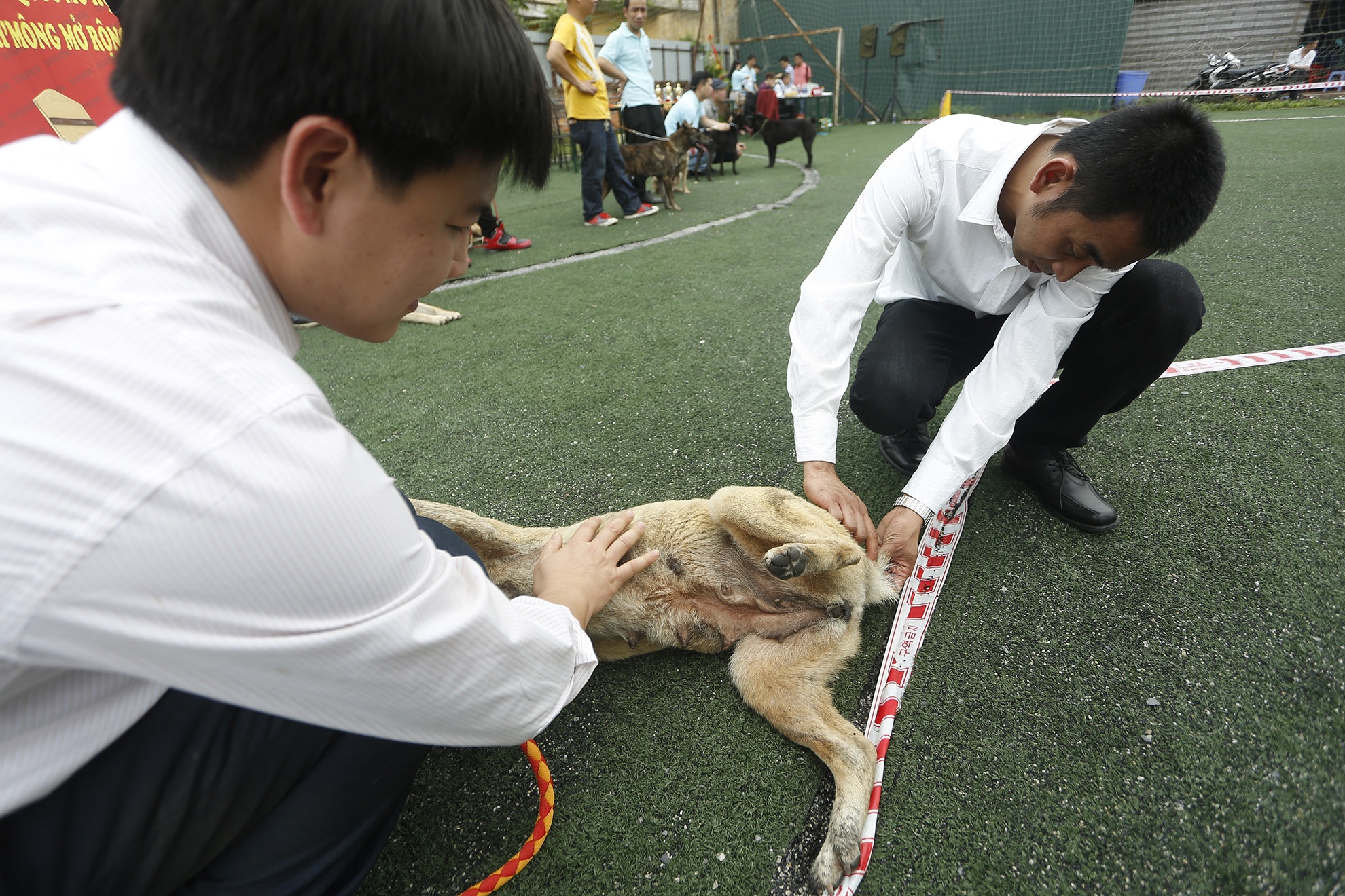 | ... phần lông và xem "giò" từng chú chó để đánh giá giống chó tốt. |