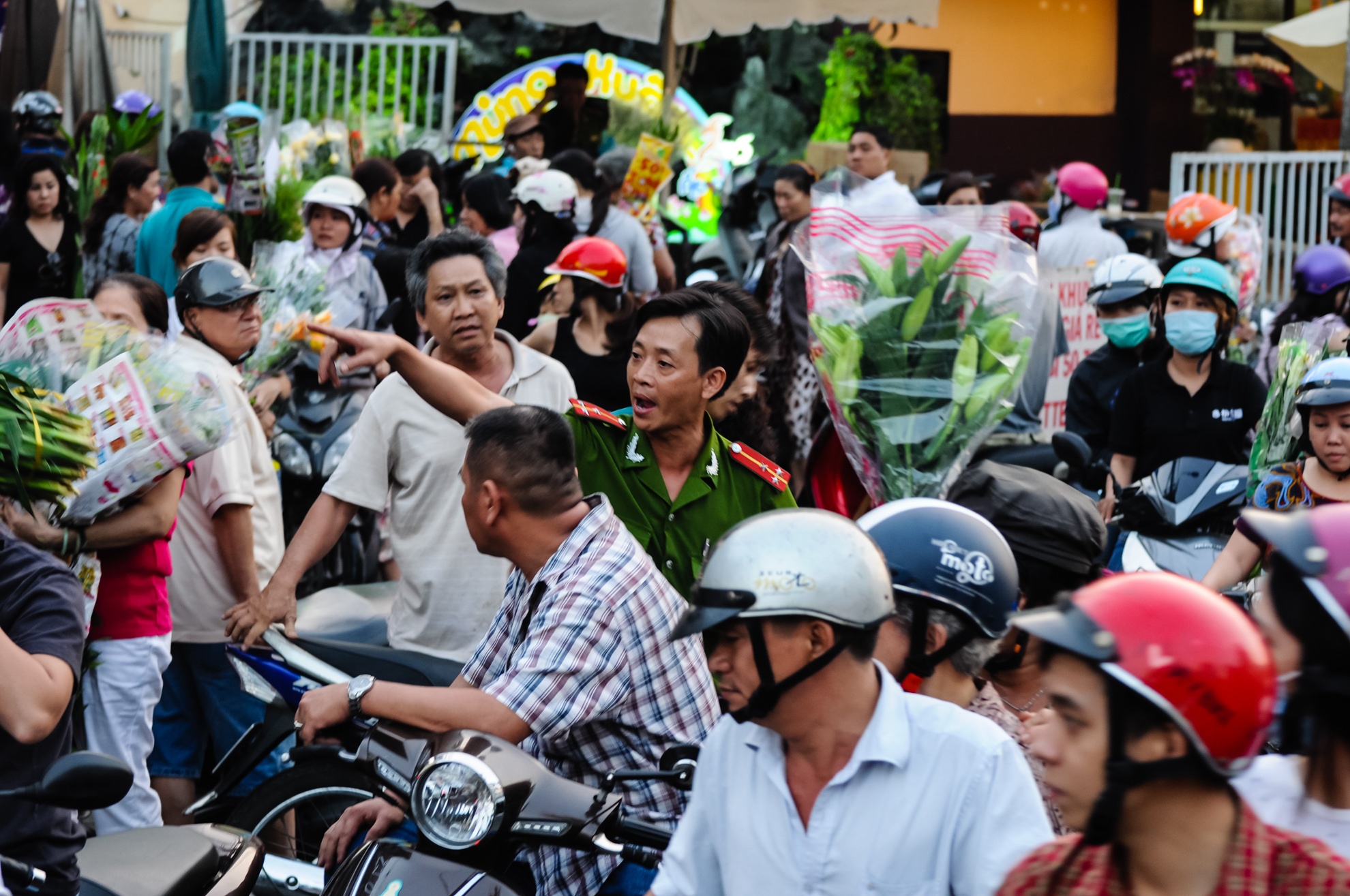 Lực lượng công an phường phải dựng hàng rào bảo vệ ngăn người dân tùy tiện băng qua đường, cũng như giải tán đám đông đậu xe giữa đường mua bán, nhưng vẫn không dẹp được tình trạng hỗn loạn.
