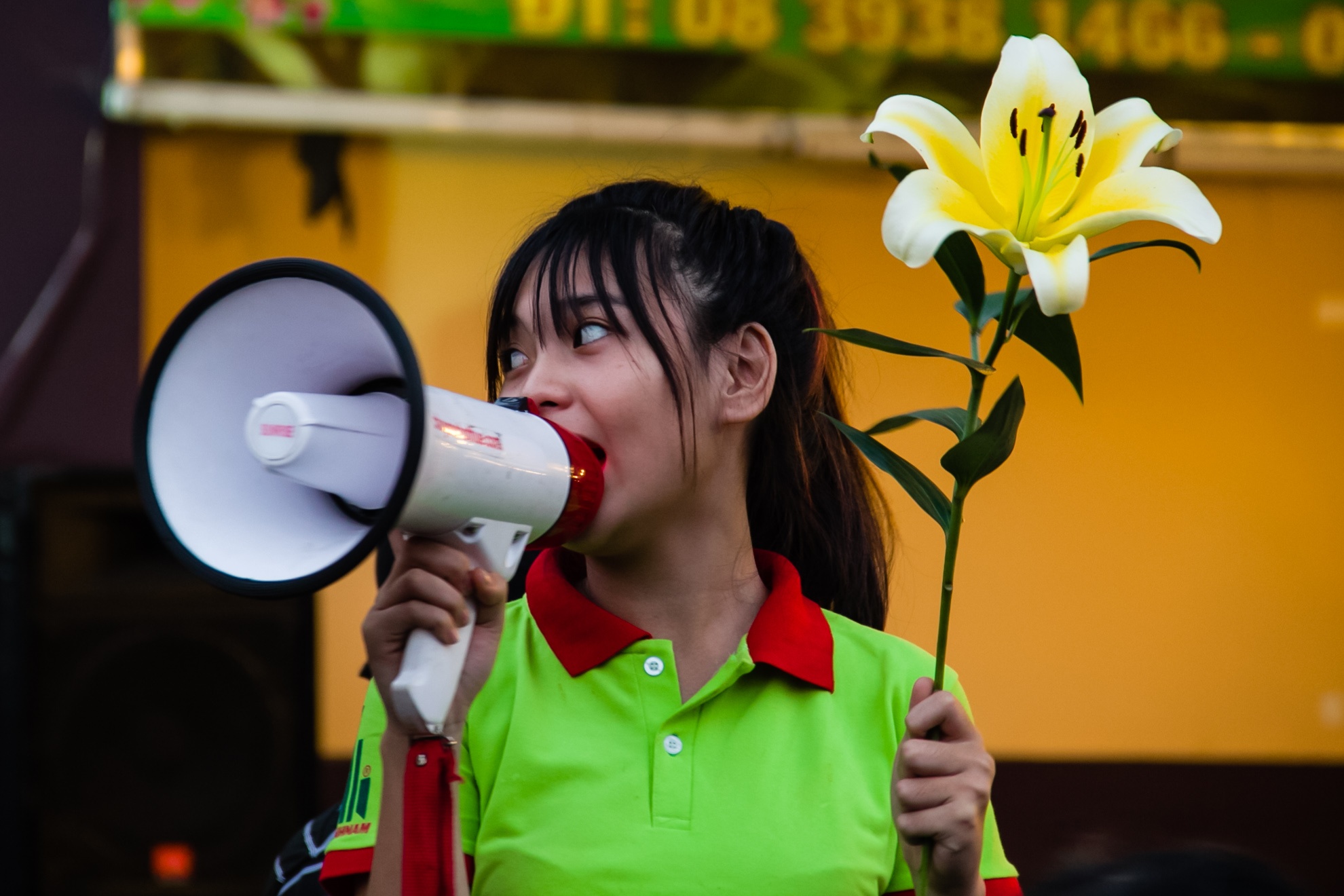| Ngoài những cửa hàng hoa đã có từ lâu trong khu chợ, Ủy ban nhân dân phường 1 quận 10 cũng biến thành "chợ hoa" và hoạt động rất chuyên nghiệp. Người bán bắc loa rao thông báo giá từng loại hoa cho khách chọn mua. |