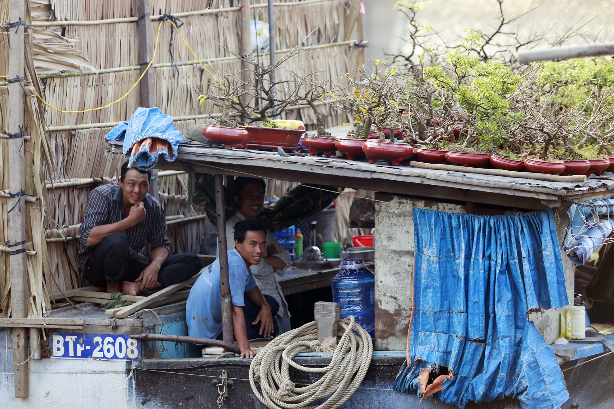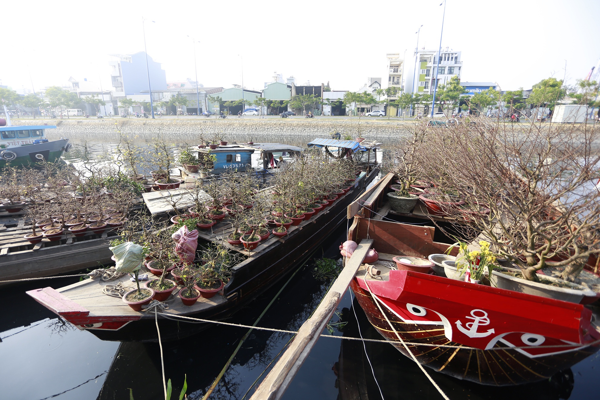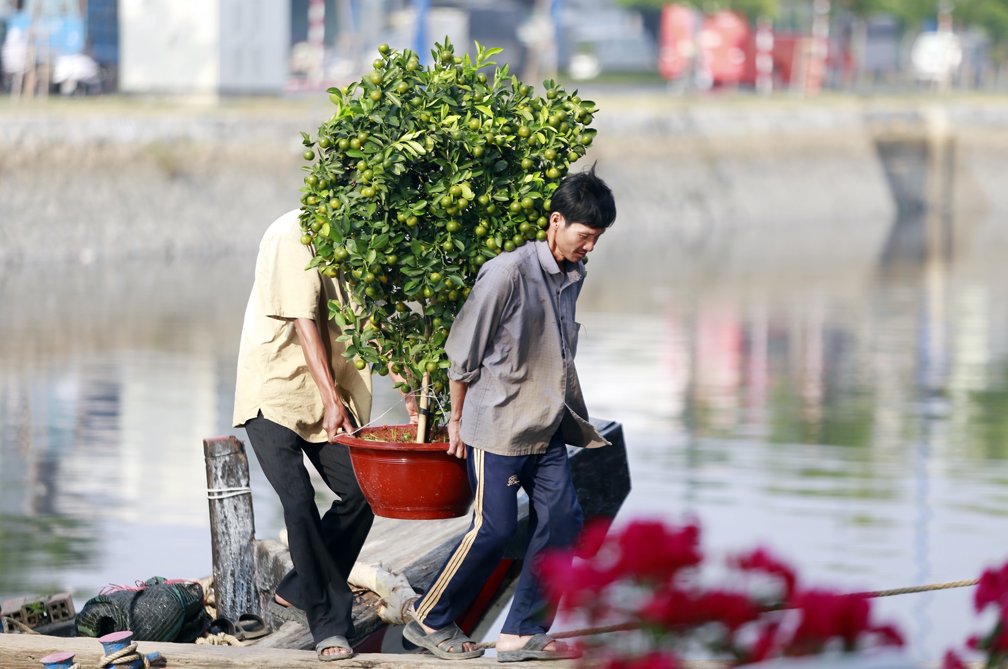 | Khắp tuyến sông phương tiện hối hả chở đầy hoa, cây cảnh về thành phố để chuẩn bị cho mùa xuân mới. |