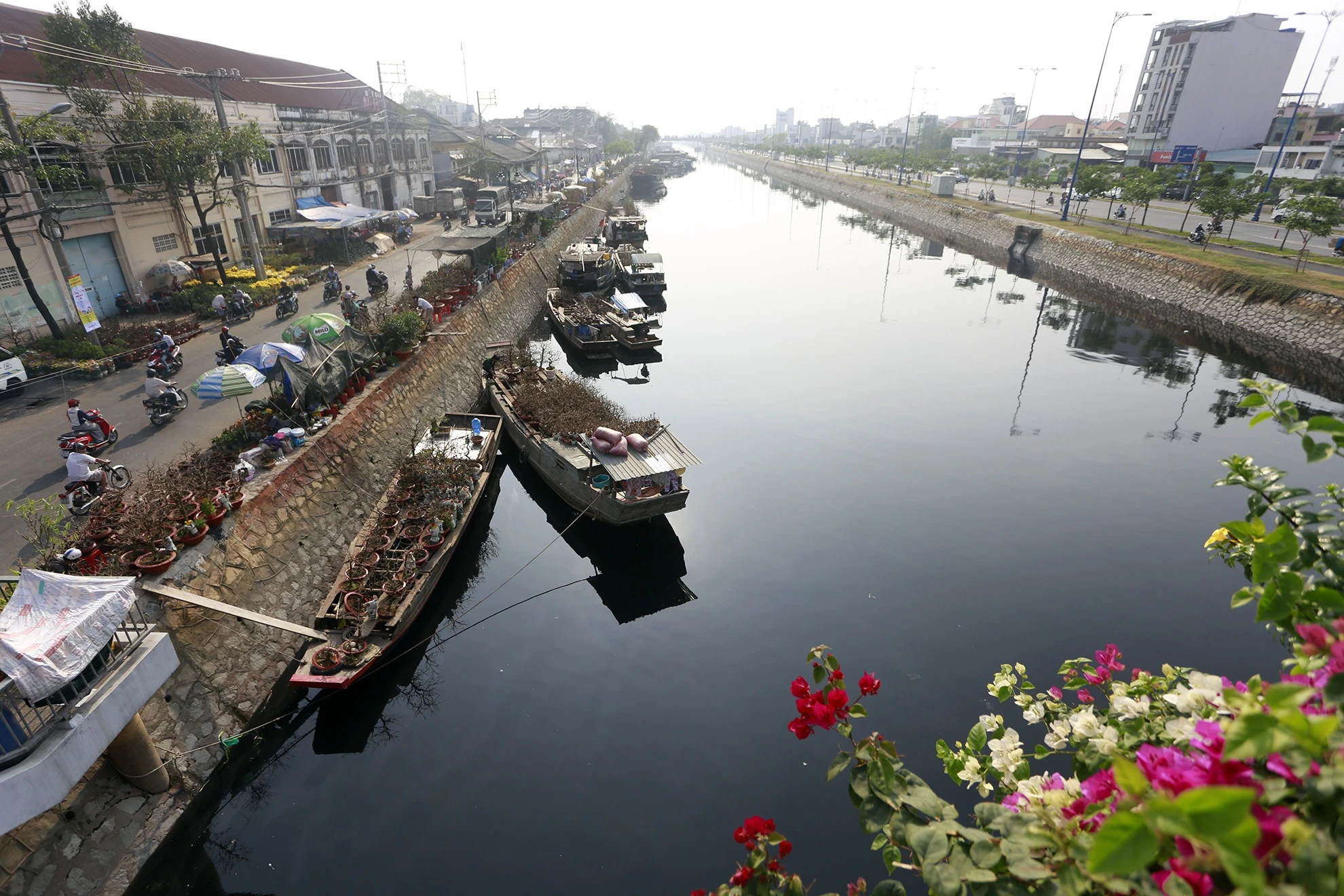 | Chợ hoa Tết "Trên bến dưới thuyền" là nét văn hóa đặc sắc, truyền thống của người dân Sài Gòn được tổ chức hằng năm dọc tuyến kênh Tàu Hủ - Bến Nghé (đường Bến Bình Đông, quận 8, TP.HCM). |
