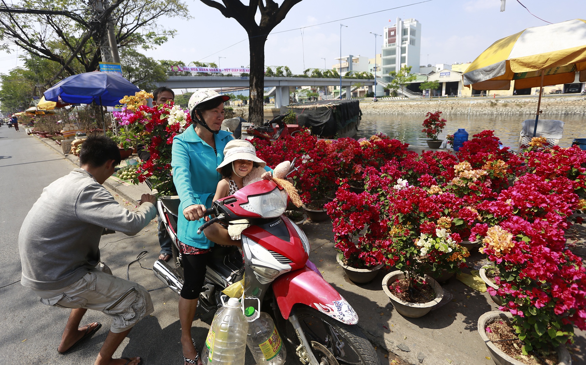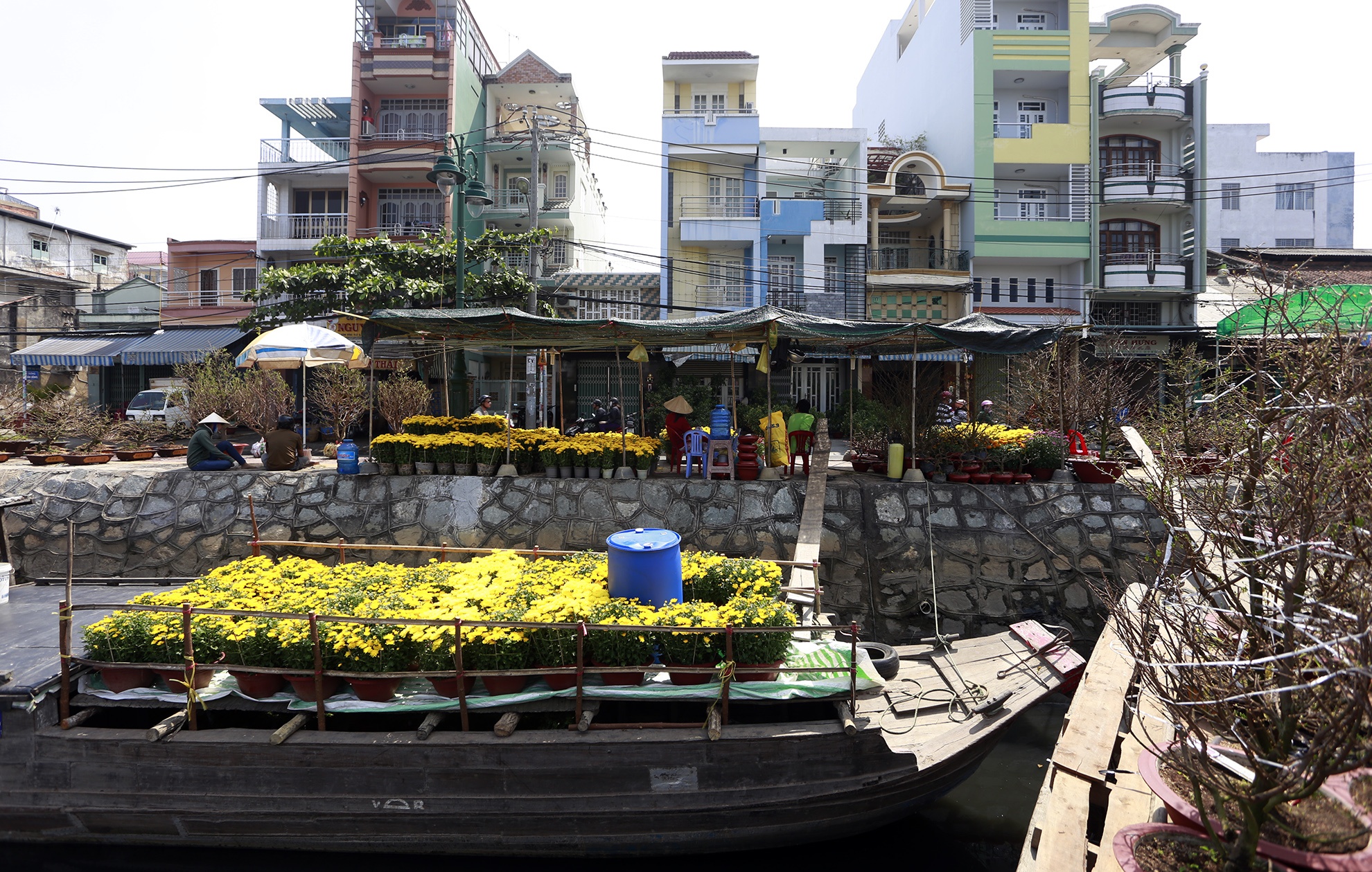 Hoa bày bán dọc bến Bình Đông tạo nên nét đặc sắc của Sài Gòn.
