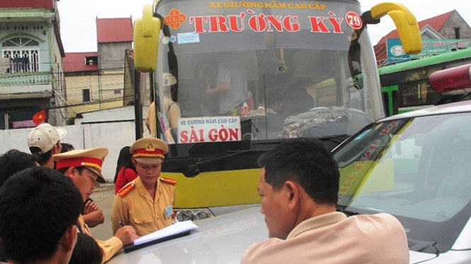 “Lúc đó, xe khách Trường Kỳ không dừng lại mà bỏ chạy”, thiếu tá Trần Hậu Đương, đội CSGT phía Bắc, cho biết.