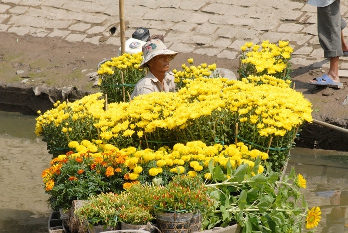 | Đưa hoa ra chợ bán trong những ngày Tết. |