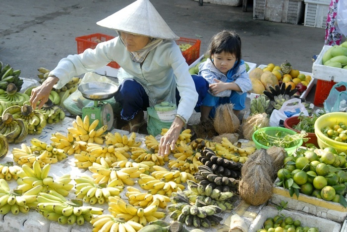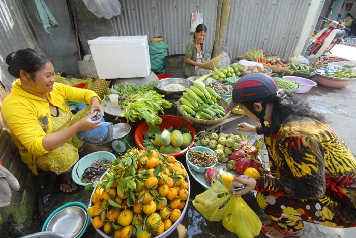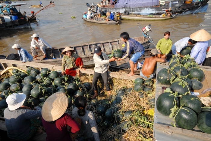 Năm nay, đa số nông dân đồng bằng sông Cửu Long trúng mùa, lại bán được giá nên các mặt hàng ở chợ cũng phong phú hơn.