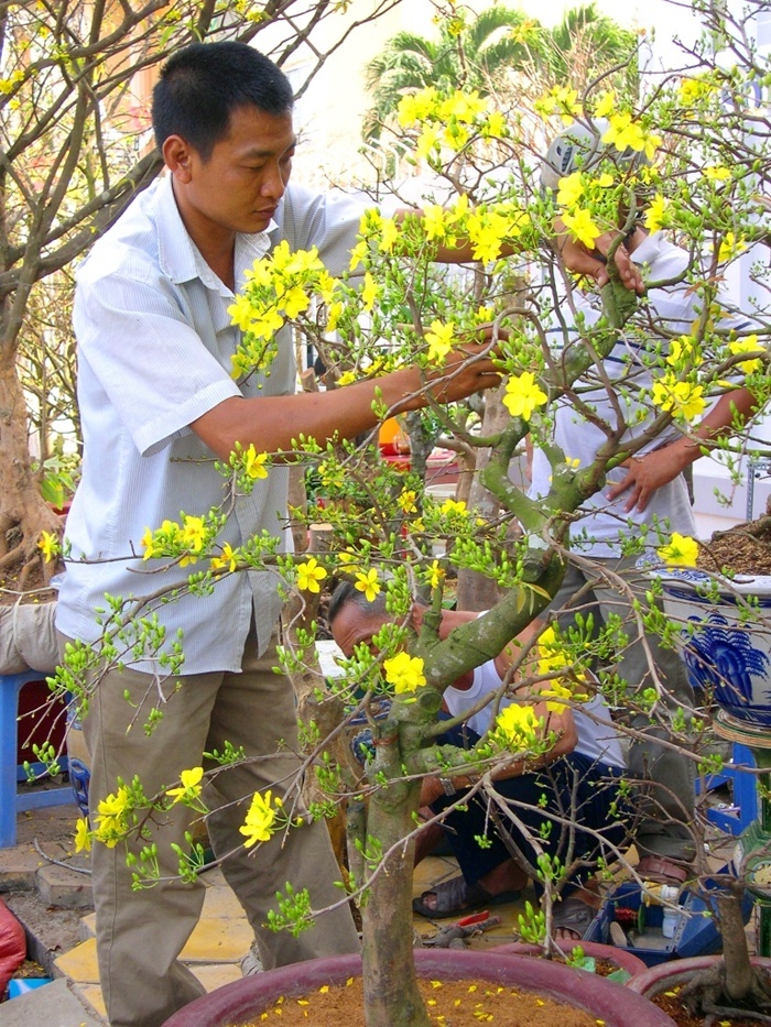 | Người dân nông thôn, mua hoa về trưng trong nhà chuẩn bị ăn Tết. |