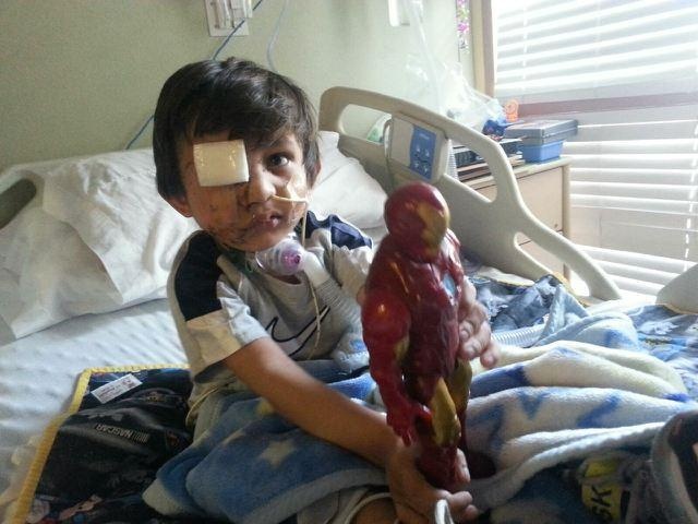 | Khuôn mặt của cậu bé Kevin Vicente sau khi con chó tấn công cậu. Ảnh: AP |