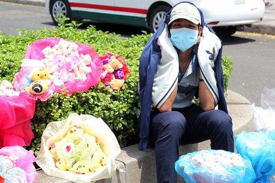 | Dưới cái nắng chói chang, bạn sinh viên này vẫn đội nắng bán hàng, nhằm giữ được vị trí tốt bán đến tối. |