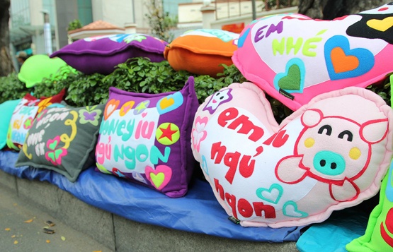 | Điều đặt biệt ở chiếc gối này chính là những dòng chữ đáng yêu được cách điệu trên gối. Những chiếc gối có giá từ 90.000 - 200.000 đồng.. |