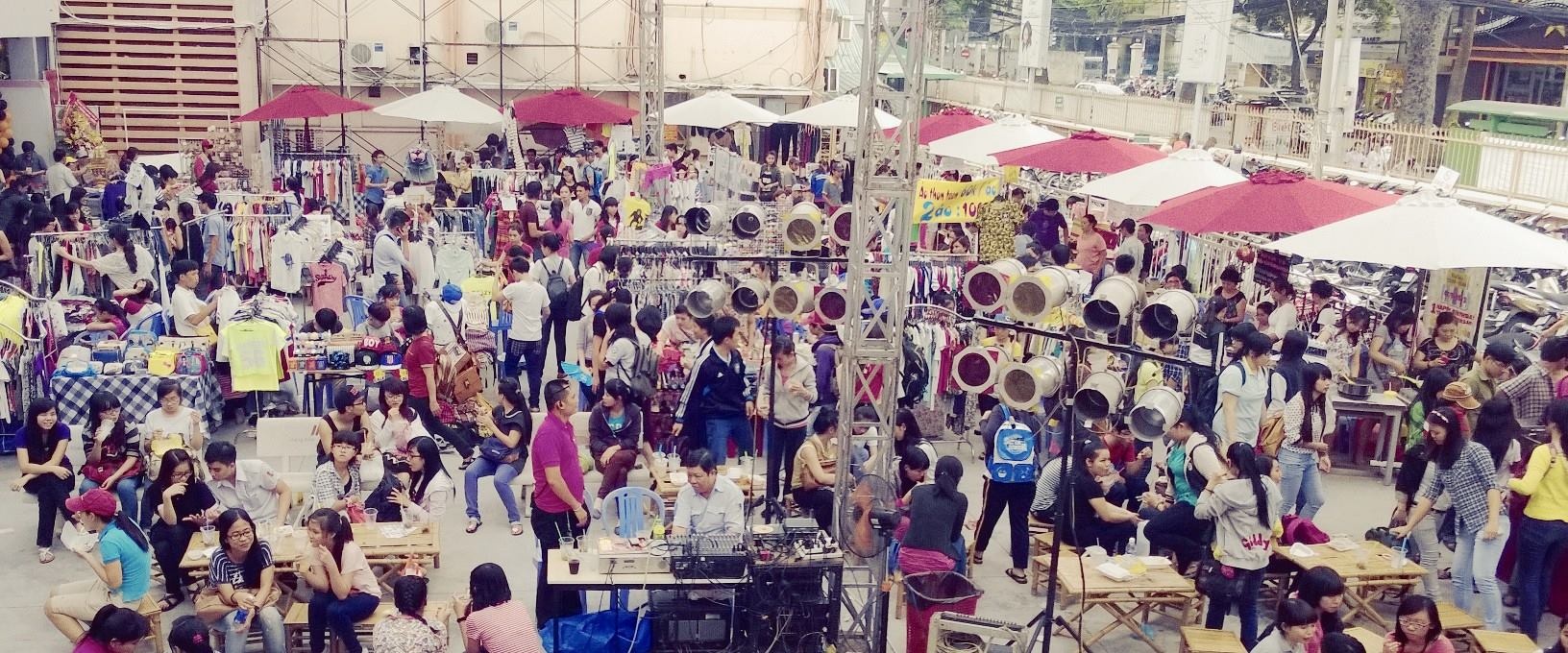 Phiên chợ được tổ chức ngay tại nhà văn hóa Thanh niên, thời gian kéo dài từ 11h đến 22h mỗi phiên. Mặt hàng chủ yếu là các mặt hàng phù hợp và được giới trẻ yêu thích như đồ handmade, home decór, phụ kiện, thời trang, mặt hàng lưu niệm, art products…