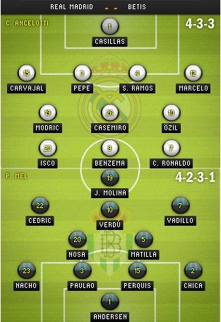 Hiện tại Real đang có lực lượng mạnh nhất cho trận khai màn với đầy đủ hảo thủ như Ozil, Modric, Benzema, Ronaldo cùng bộ ba tân binh sáng giá Carvajal, Casemiro và Isco. Cùng với lợi thế sân nhà Bernabeu, nơi từng là mồ chôn của Real Betis ở 4 lần tiếp đón gần nhất, các Madridista hẳn đang rất háo hức chờ màn ra mắt hoành tráng của Kền kền trắng.