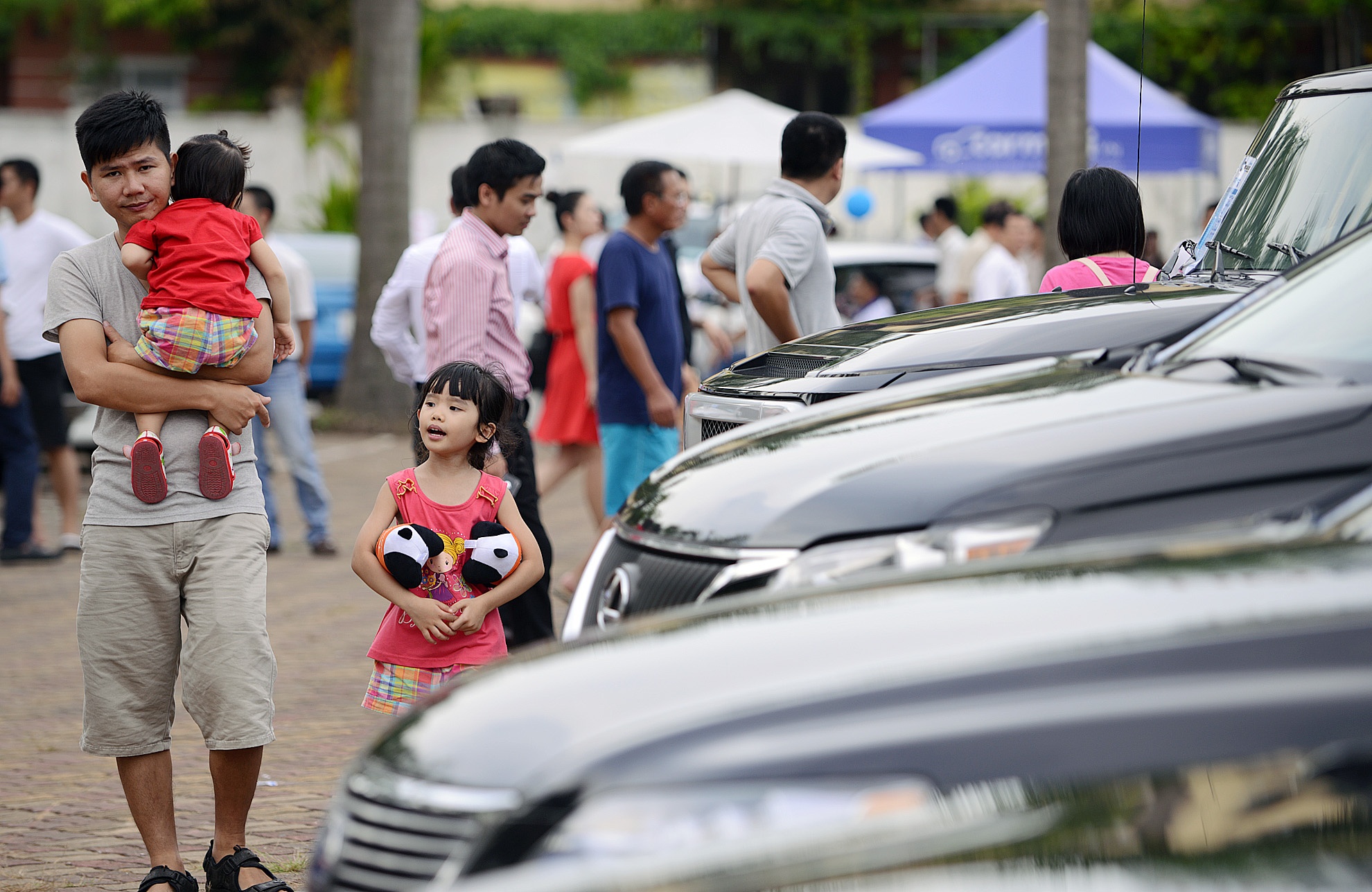 Nhiều trẻ em cũng đến ngắm xe. Chúng thích thú những chiếc có kiểu dáng thể thao, màu sắc sặc sỡ.