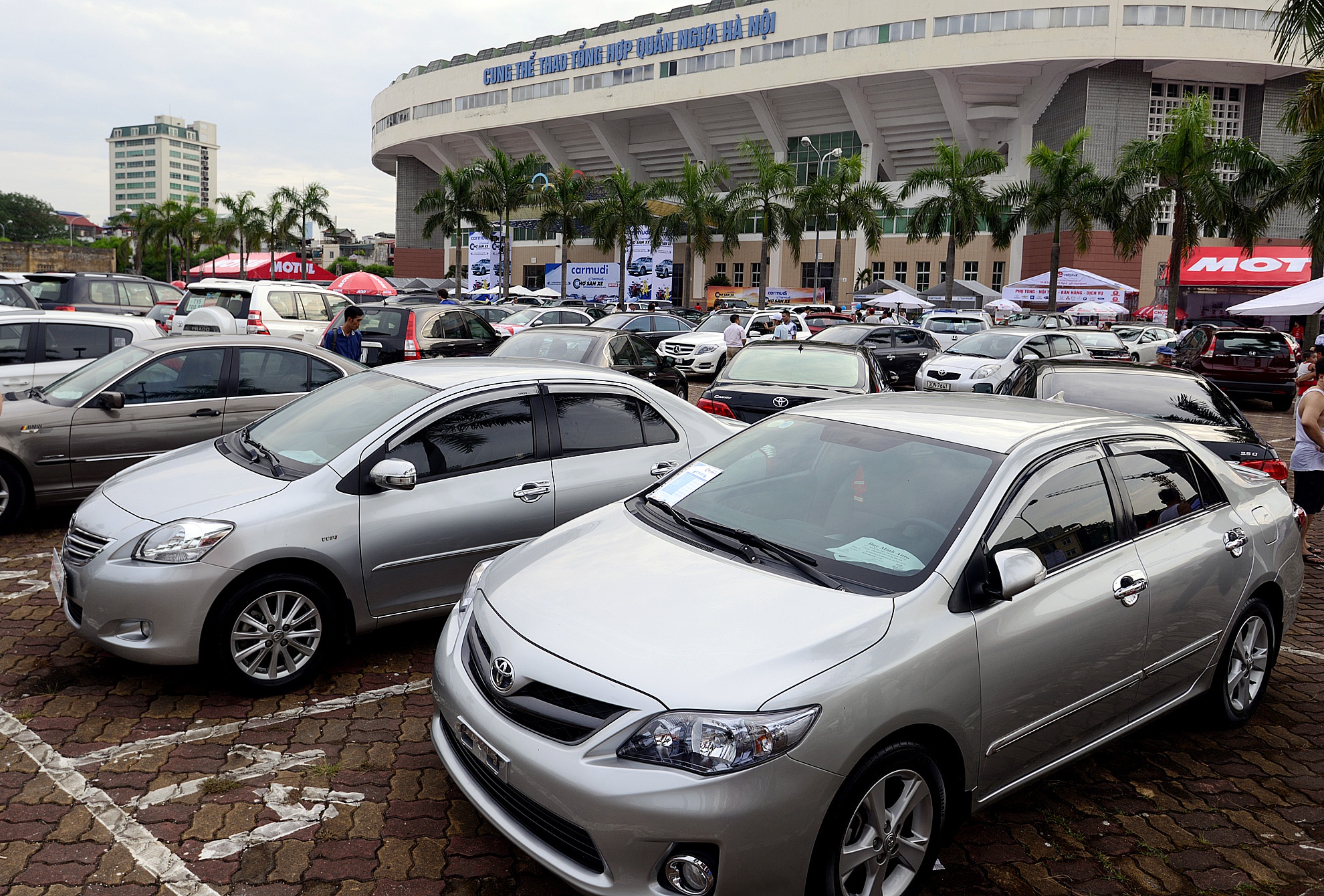 Nhiều thương hiệu ôtô từ bình dân đến siêu sang xuất hiện trong hội chợ bán xe tại Cung thể thao Quần Ngựa (Hà Nội) sáng 18/7.
