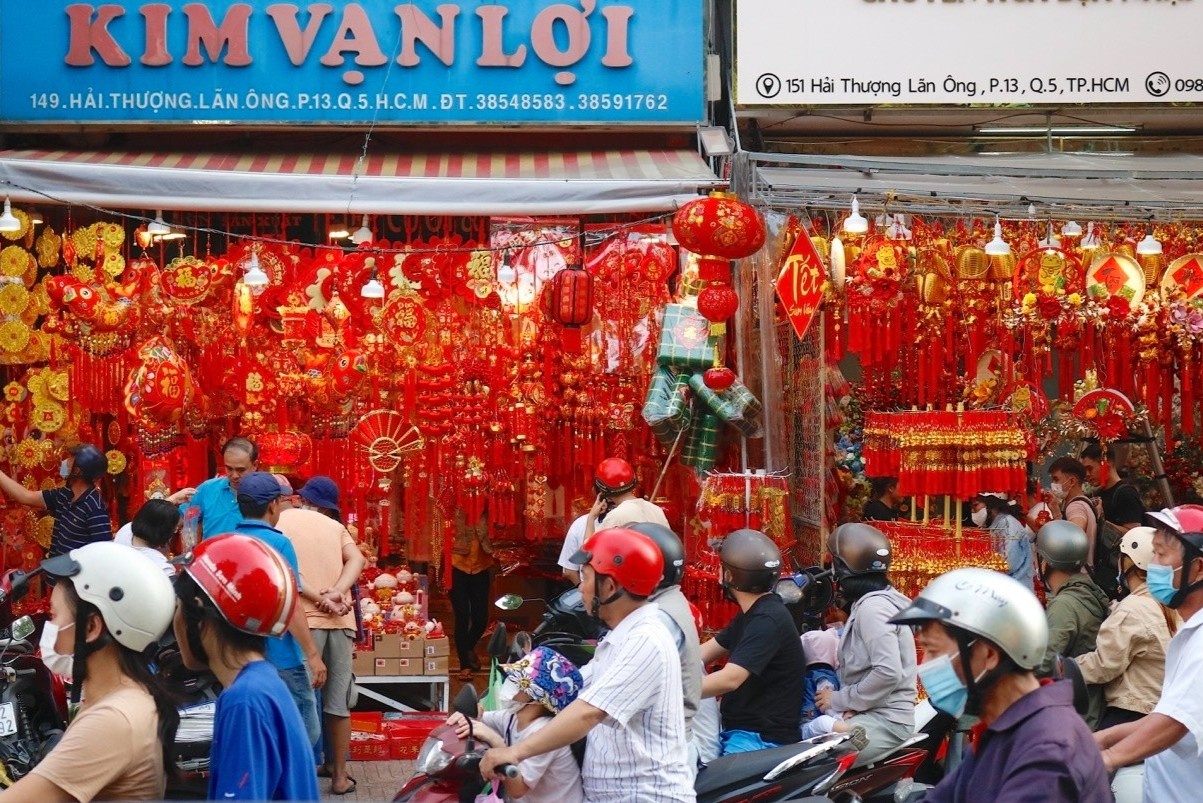 Ngoài chợ sắm đồ Tết ở quận 5, nhiều địa chỉ mua sắm đồ trang trí tại TP.HCM cũng tấp nập không kém trước thềm năm mới.