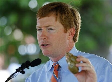| Ông Adam Putnam, quan chức phụ trách ngành nông nghiệp của bang Florida, cầm một con ốc sên khổng lồ tại thành phố Miami hôm 29/8. Ảnh: Reuters. |