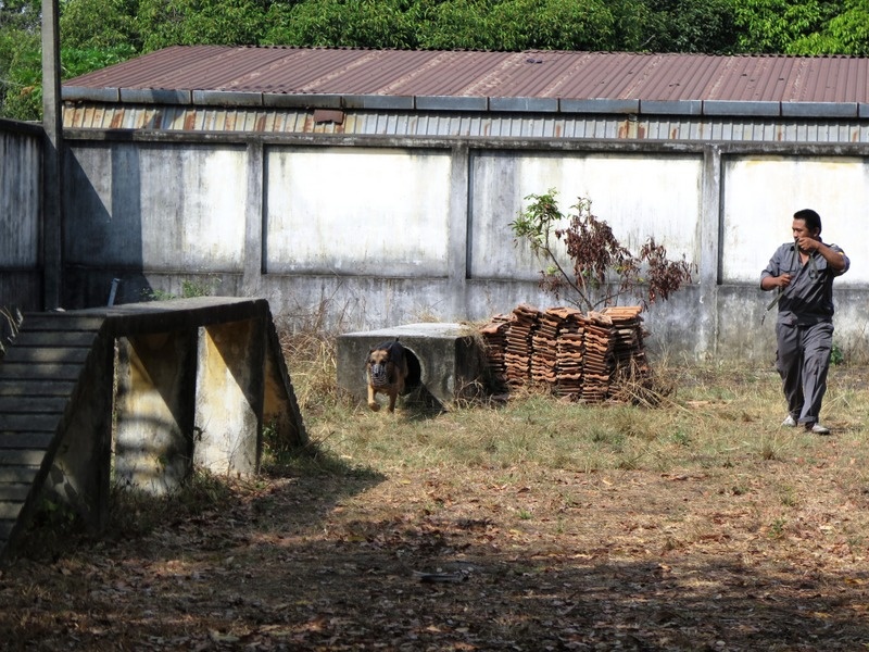 | Thiếu úy Cao Quang Khải đang tập cho "thám tử" Gin vượt qua chướng ngại vật cao 1,5m. |