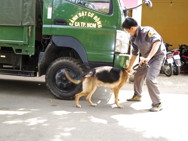 | Nhận nhiệm vụ truy tìm thuốc nổ bị các đối tượng cài trên ô tô, Gold cùng huấn luyện viên Võ Minh Trung tích cực vào cuộc. |
