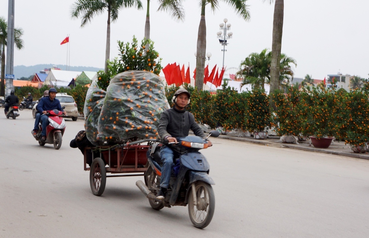 Trung bình mỗi ngày, ông chở thuê hoa đào và quất cảnh được 10 đến 15 chuyến.