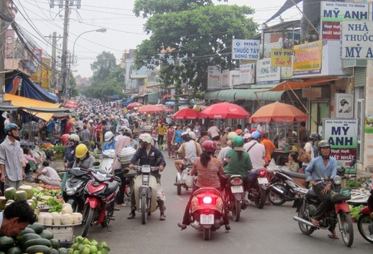 | Bên cạnh những khu chợ bỏ hoang là các chợ tự phát lúc nào cũng đông đúc, nhộn nhịp. |