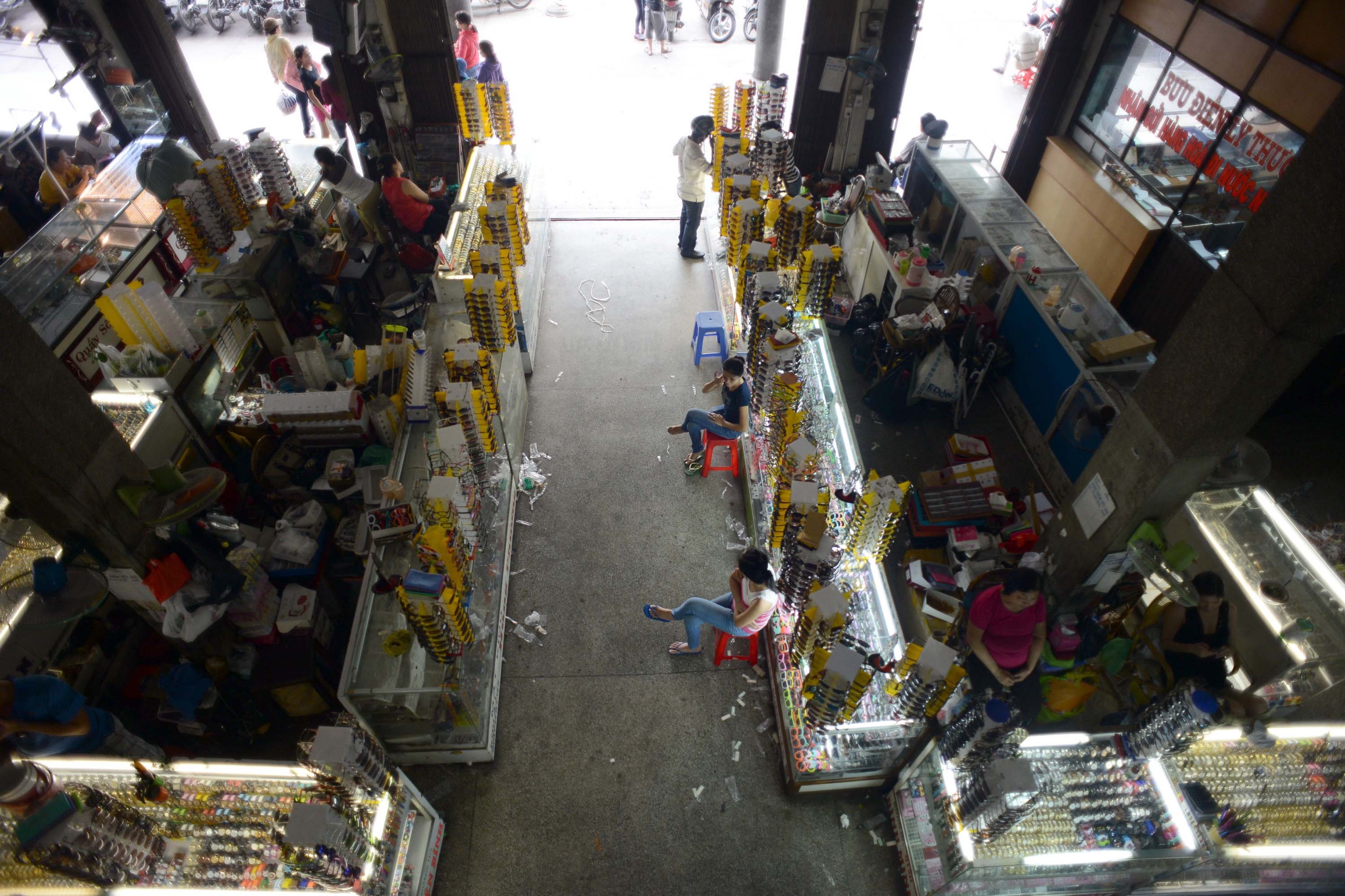 | Bên cạnh đó, chợ Tân Bình cũng kinh doanh nhiều mặt hàng khác như khu vực kinh doanh vàng bạc, mắt kính tại cổng chính. |