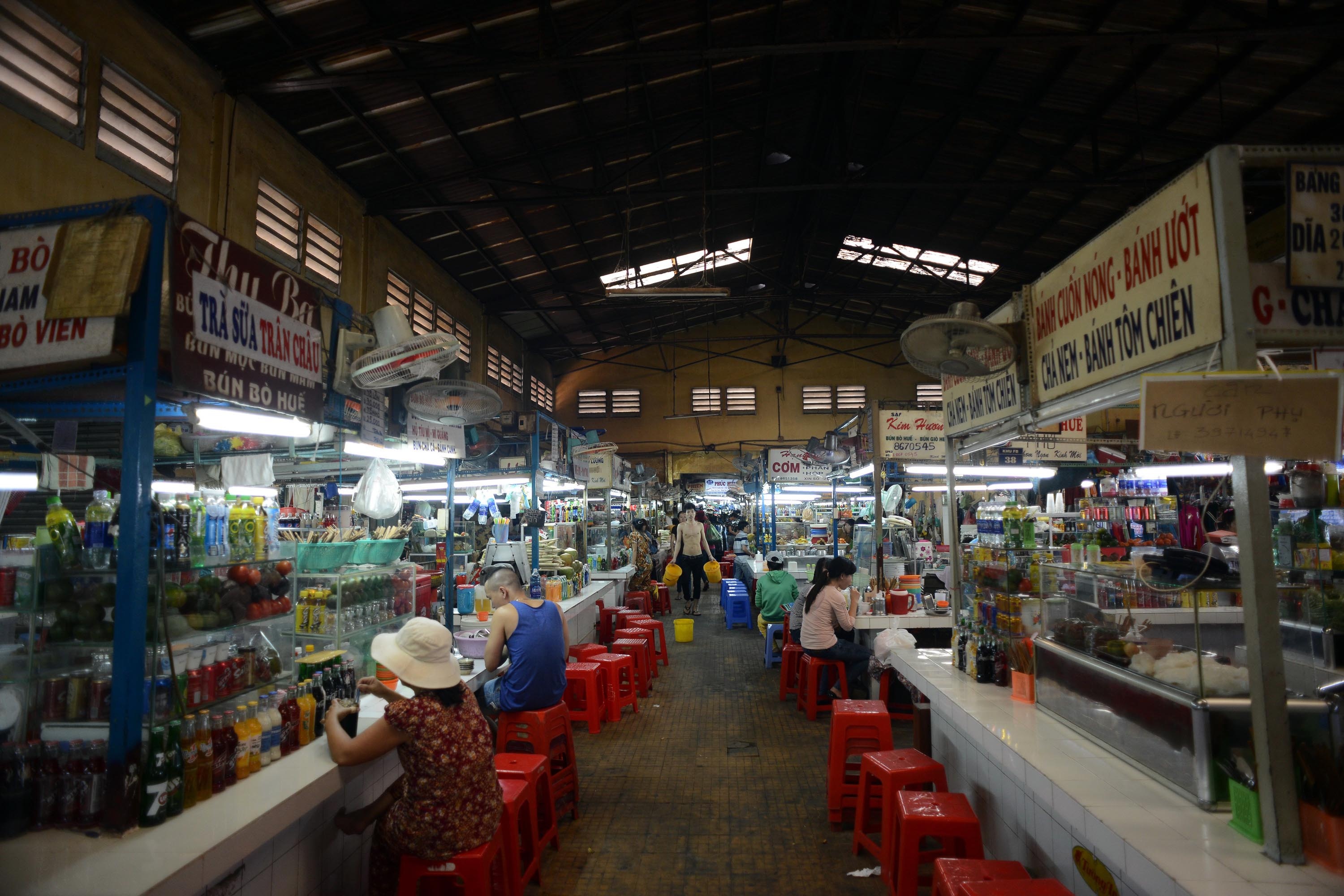 | Khu vực ăn uống, lương thực, thực phẩm tươi sống... ở phía sau chợ. |